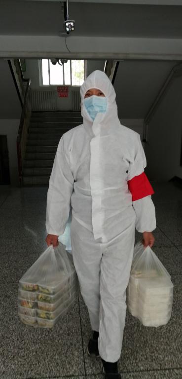 门开了,一位步履蹒跚,满头银发的老人出现在眼前,老人是机械电气化工程学院科研与研究生管理办公室主任张景川老师的母亲,今年已经80多岁了。自儿子和儿媳参与到学校返校复学集中休整工作中,家中只有老人一个人。学院了解到这个情况,招募疫情防控志愿者,安排专人负责给老人做饭、送饭。
