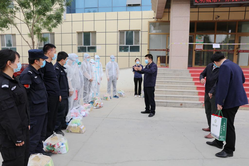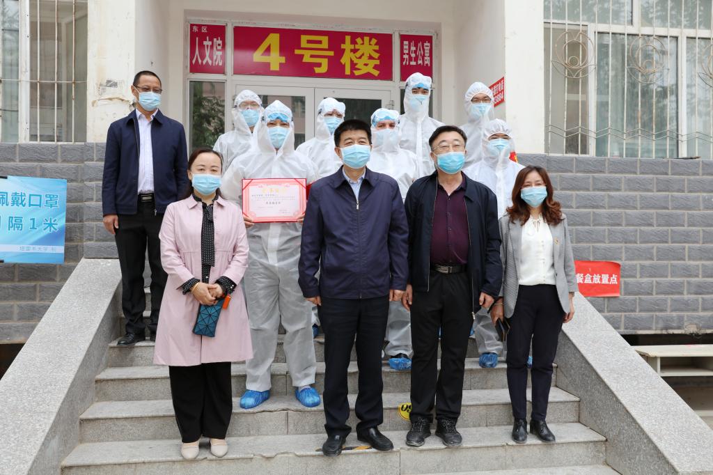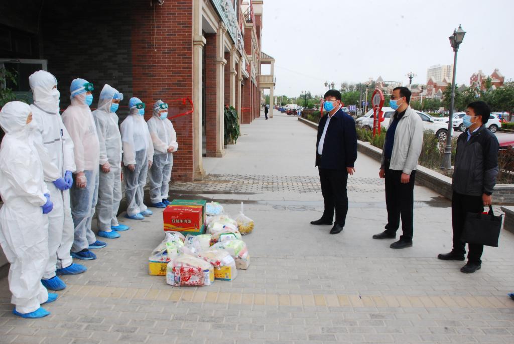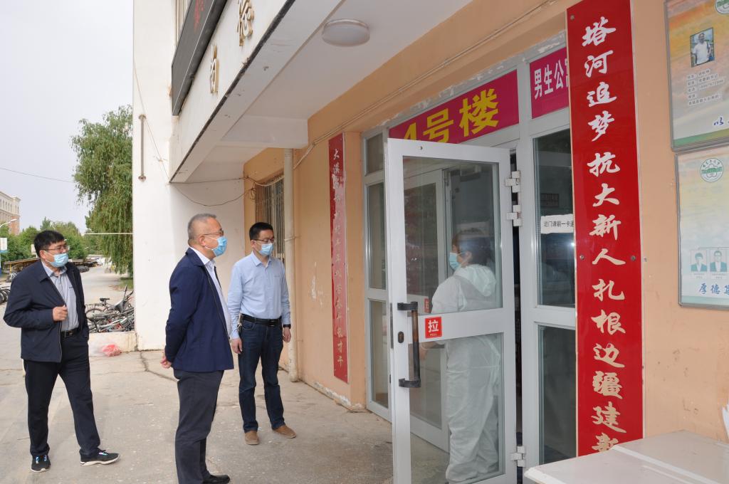 弘扬胡杨精神、劳动精神,克服艰难险阻,在平凡岗位上续写不平凡的故事。在“五·一”国际劳动节之际,5月1日上午,党委书记赵光辉,党委副书记、校长张传辉,党委副书记、纪委书记单洪山,党委副书记张爱萍,党委常委、副校长卢光志,副校长张利莉,党委常委、副校长曲义勇、于军、石长青,分为九组到学校各宿舍楼、阿拉尔市各有关宾馆,看望慰问入住教职工、安保人员、医护人员和保洁人员等返校复学和疫情防控一线工作人员。