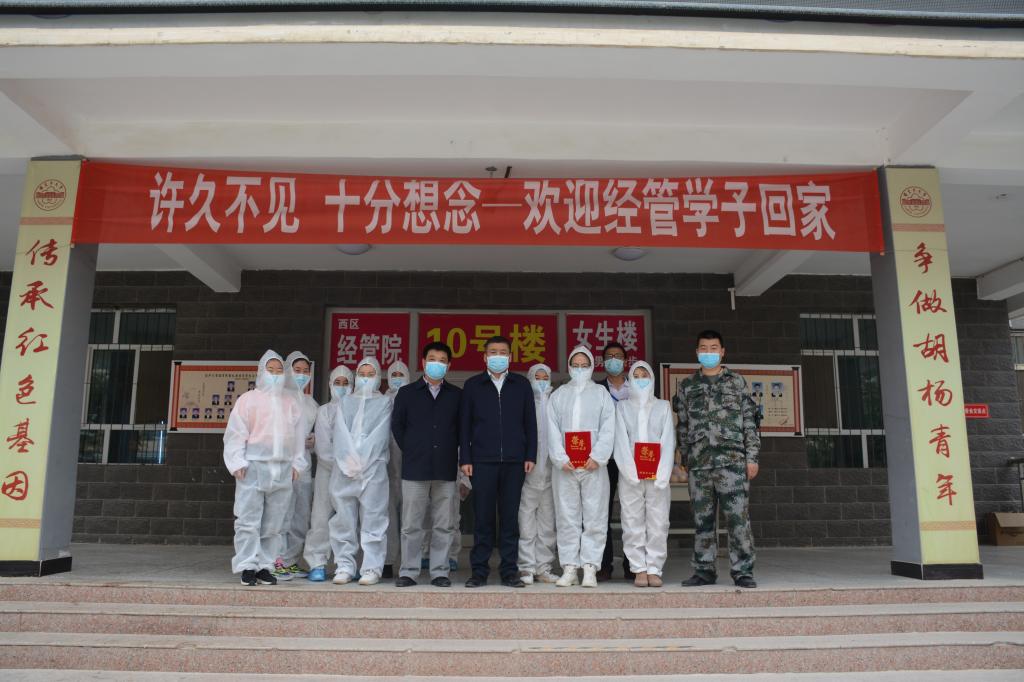 赵光辉强调,广大党员干部和师生员工要不断增强“四个意识”、坚定“四个自信”、做到“两个维护”,深入贯彻落实习近平新时代中国特色社会主义思想,认真贯彻落实新时代党的治疆方略和对兵团定位要求,传承弘扬兵团精神、老兵精神和胡杨精神,必须时刻绷紧疫情防控这根弦,抓紧抓实抓细常态化疫情防控,有针对性地加强外防输入、内防反弹举措,不断巩固全国疫情防控阻击战取得重大战略成果,为经济社会秩序全面恢复提供有力保障,确保完成决战决胜脱贫攻坚目标任务,全面建成小康社会。广大党员干部和师生员工要坚定信心、保持干劲,弘扬劳动精神,克服艰难险阻,统筹做好常态化疫情防控和返校复学工作,扎实推进学校发展各项工作,在平凡岗位上续写不平凡的故事,用自己的辛勤劳动为统筹推进疫情防控和学校事业发展、服务兵团深化改革和向南发展贡献更多力量,努力开创学校事业发展新局面。