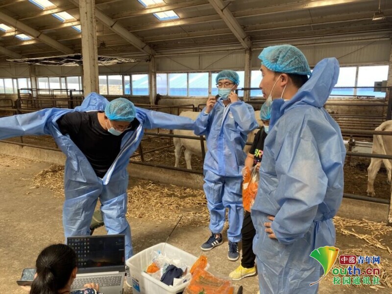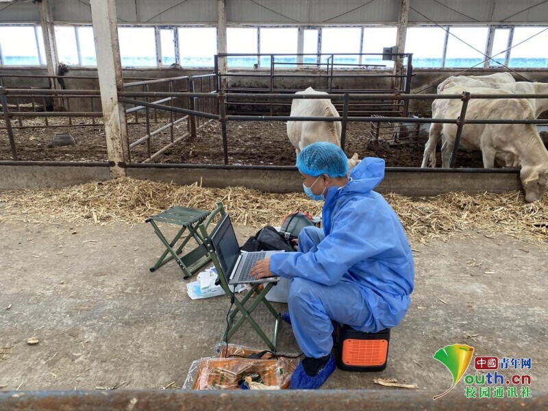 图为团队成员在准备测量牛的基础数据时的照片。中国青年网通讯员 王云峰 摄